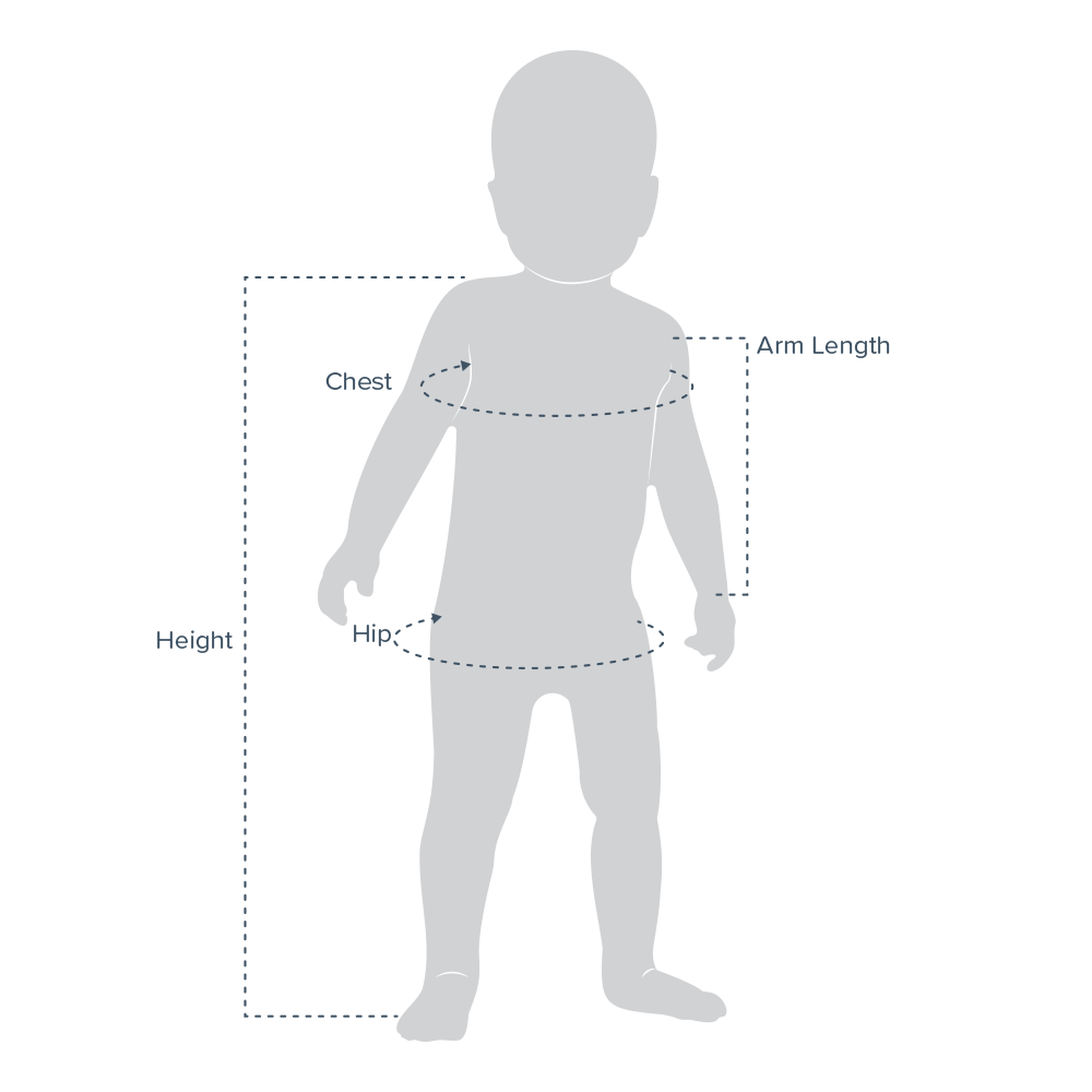 | Size | Height/Length | Chest | Arm | Hip | Inside Leg |